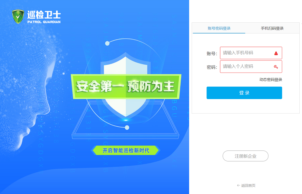1、打开巡检卫士应用管理中心,输入账号、密码,点击【登录】按钮进入系统。